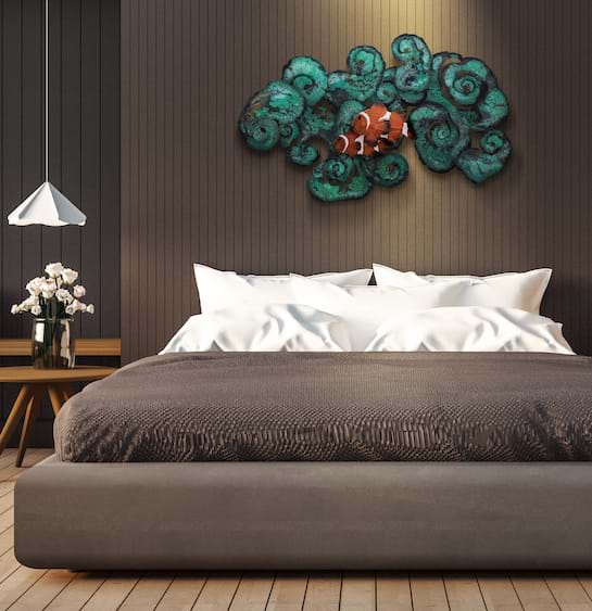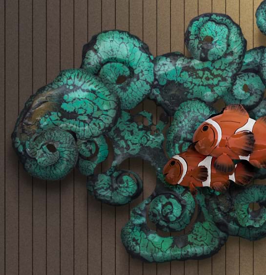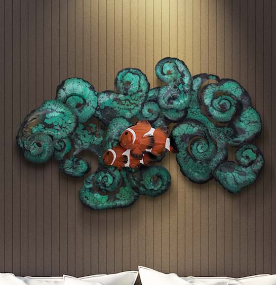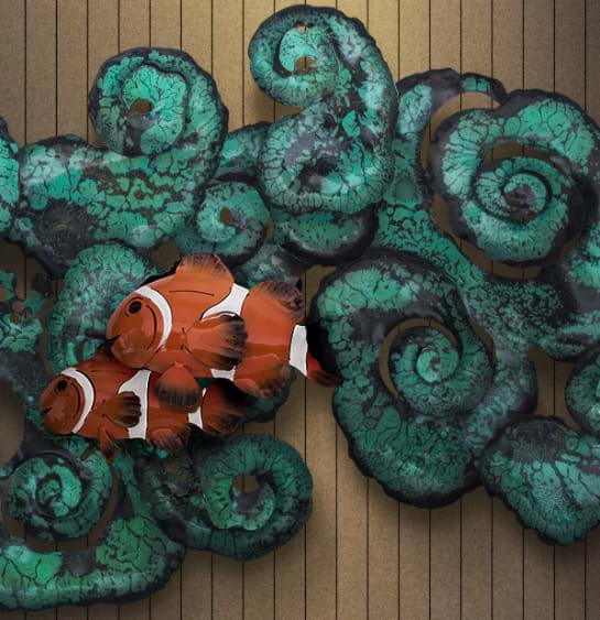 Inspired from the deep ocean corals in Similan Islands, Thailand, we captured the beautiful crown fishes swimming around the coral. The masterpiece present the perfect composition and artistry. - Chansak Pondet